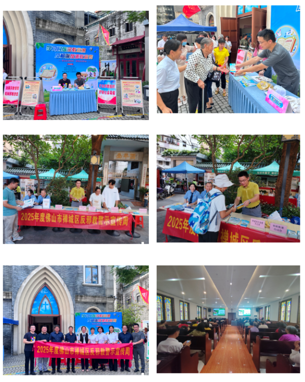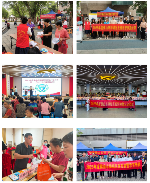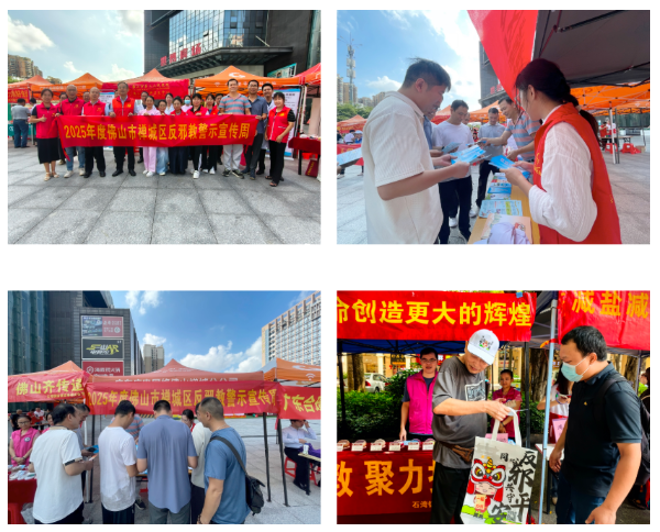 为全面提升辖区居民识邪、防邪、拒邪的意识和能力,积极营造“全民反邪教,聚力护平安”的社会氛围,在中共佛山市委政法委员会指导下,禅城区于近期在全区组织开展了“2025佛山市反邪教宣传周”系列活动。本次活动精准聚焦宗教民俗、社区生活、学校教育、商圈广场四大重点领域,通过多层次、靶向化宣传布局,取得了良好社会效果。