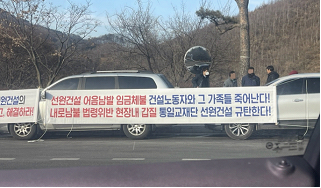 ▲“天苑宫”前示威的建筑工人。图源:Daum Cafe“统一教”腐败举报监督委员会
