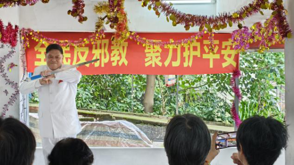 活动中,工作人员先向村民发放反邪教宣传手册,结合典型案例,深入浅出地讲解邪教的本质、特征、危害以及识别邪教的方法,让村民对邪教的危害有更清晰的认识,提醒群众要自觉防范和抵制邪教,做到“不听、不信、不传”,引导村民自觉抵制邪教侵害,如若发现邪教组织非法聚集、传播邪教等涉邪违法线索,要第一时间向公安机关或附近最小应急单元进行举报。