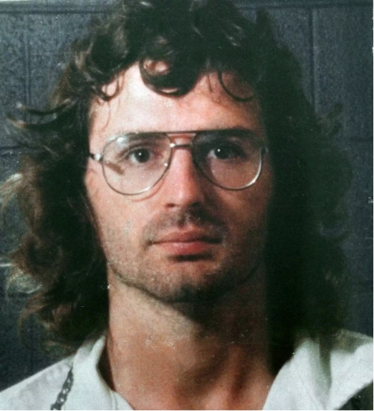 ▲图为“大卫教派”教主大卫·考雷什被警局拘留时的照片。他当时与前教徒发生枪战后被送到警局