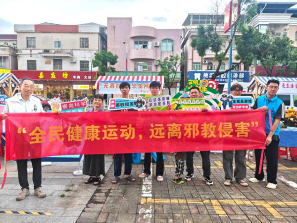 同时各镇街活动将反邪教宣传与健康运动相结合,志愿者在各大活动现场发放反邪教宣传资料,并以现场解说的形式普及反邪知识,传播科学精神,生动揭露邪教假借“健身”之名行欺骗之实的本质。用实际行动筑牢反邪“铁篱笆”,传递健康生活理念。