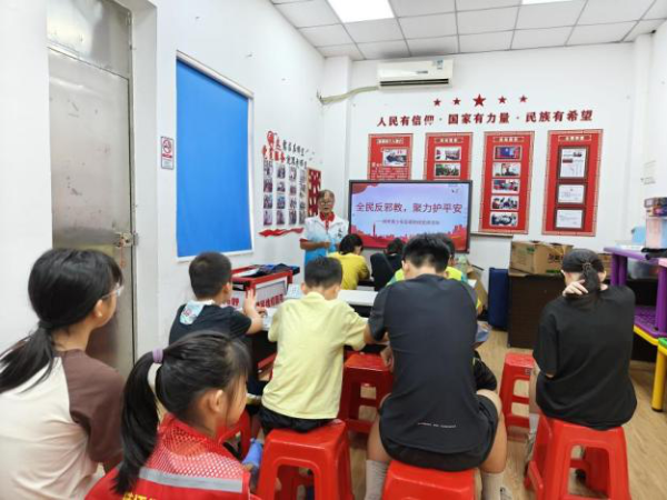在反邪宣传周期间,南沙街道辖区内的飞沙角社区、蝴蝶洲社区、沙螺湾村等工作人员在党群服务中心,向前来办事的居民群众派发反邪教宣传资料,宣传反邪教知识及相关法律法规,帮助居民群众提高辨别能力,引导他们自觉抵制邪教,提高居民群众的防范意识。东涌镇联合鱼窝头最小应急单元为志愿队举行了庄重的授旗仪式,凝聚了基层治安维稳与志愿服务力量,强化了反邪教宣传工作的组织基础。黄阁镇平安法治办联合“小黄帽”志愿者服务队深入辖内留东村、南涌口村、沙仔村开展反邪宣传,强化村民群众对邪教组织的认知与防范意识,进一步推动平安乡村、法治乡村的建设进程。万顷沙镇联动社区网格,依托“最小应急单元”,推动反邪宣传进小区、进街巷,构建“全民参与、全域覆盖”的防邪格局。横沥镇全镇16个村(社区)的网格员化身“反邪使者”,走进出租屋、工厂宿舍开展“敲门行动”。他们用方言讲解邪教危害,增强来穗人员的防邪意识,提高对邪教的免疫力,并持续不断深入厂企、工地、出租屋,开展面向来穗人群的反邪教宣传、宣讲活动。