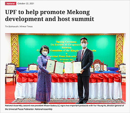 ▲柬埔寨《高棉时报》(Khmer Times)2021年第1期相关内容:“世界和平联合会”协助推进湄公河开发事业,图为柬埔寨国会副议长与“统一教”高层尹某合影