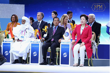 ▲柬埔寨前首相洪森与“统一教”头目韩鹤子