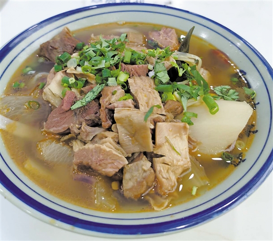 萝卜焖牛腩同样也是广州有名的传统小吃,在北京路、上下九路等老城区,不时会飘来萝卜牛腩的香味。此外,民间素有“牛肉补气,功同黄芪”之说,牛肉可以暖胃,且富含高蛋白,脂肪含量也较低,和素菜萝卜搭配,营养全面、口感软烂,香味诱人,最宜秋冬进食。