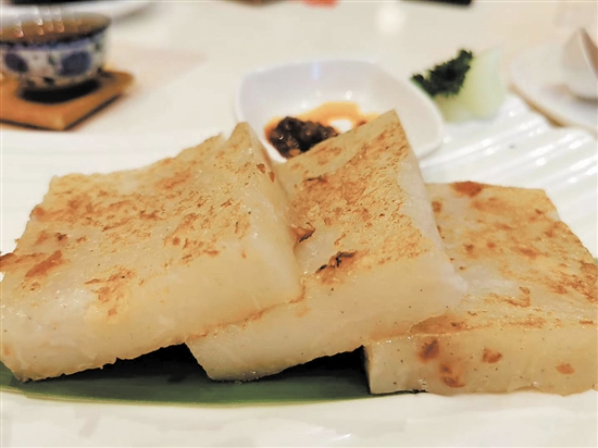 萝卜糕是广式早茶颇具代表的经典点心。传统意义上的萝卜糕是用新鲜萝卜切成细条,辅以米浆加入炒过的广式腊味、虾米等材料蒸制而成。萝卜糕除了让人唇齿留香,更珍贵的是它带有一份儿时记忆,因为以前逢年过节在广州几乎家家户户都会蒸萝卜糕,而且大家都有自己的“独门配方”,是老广儿时记忆的专属味道。