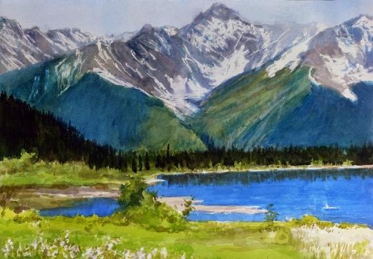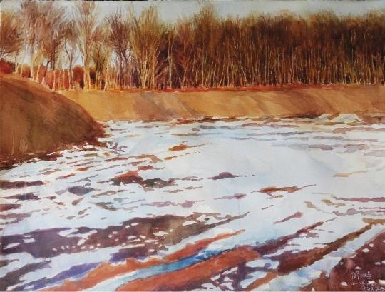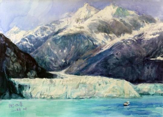 《阿拉斯加千年冰川》水彩画 38cm×76cm 2019年