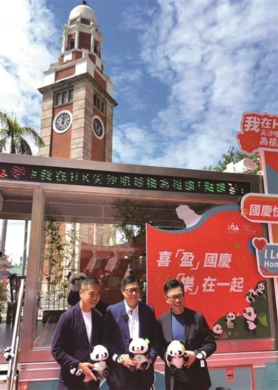 10月4日,“我与祖国同框”国庆拍照打卡活动于香港尖沙咀钟楼广场举行。活动首日,香港特区政府保安局局长邓炳强、香港生产力促进局主席陈祖恒、香港特区政府油尖旺民政事务署专员余健强等人到场支持,在现场与市民游客互动。