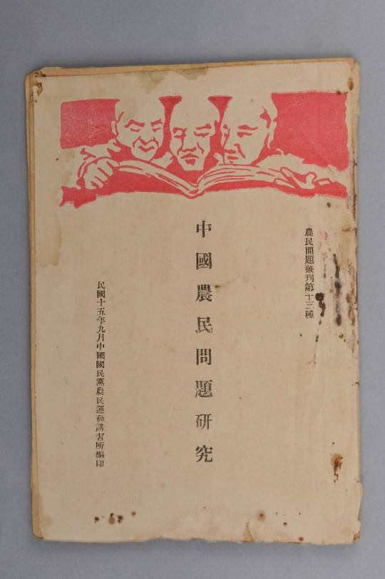 《农民问题丛刊》是第六届农讲所应全国研究和从事农运同志之要求于1926年9月编印的,由时任农讲所所长的毛泽东担任主编。内容包括有关政策、策略、论著、教材和师生调查研究成果等。《中国农民问题研究》为该套丛刊的第13种,封面有工农兵联合之图样,4号老宋体铅字竖版印刷。本书刊载了三篇文章,分别是:陈独秀1923年7月发表的《中国农民问题》;萧楚女1924年7月发表的《中国底农民问题》;吴觉农1922年写的《中国的农民问题》。该书在研究大革命时期农民运动发展状况、早期共产党人关于农民问题的探索和实践等方面,具有较为重要的史料价值和研究价值。