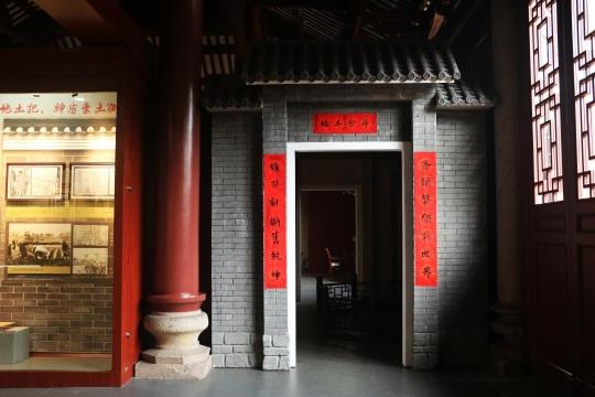 作为在古建筑中举办的专题展览,展览创新展厅布局,充分利用了古建筑内部原本的一些构件造型为框架,进行“地主宅院”场景制作,以宅院门口“斧头劈开新世界 镰刀割断旧乾坤”的对联巧妙联结起展厅内外的古建筑,使之形成时空环境的连续性。展览首次利用过道空间搭建皮影戏台,辅以长条形独立柜、活动展墙,规划出了一条全新的方向感清晰、明确的展示流向路线。因地制宜的设计,使得古建筑的流动空间与展览陈列巧妙地融合在一起,既为观众的观展提供便利,又造就了悦目的展示空间效果。