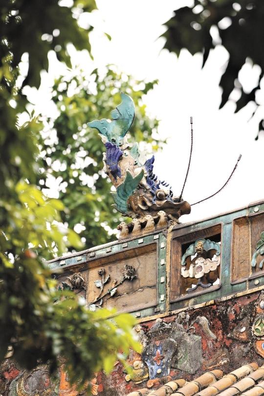 陈家祠屋脊上的鳌鱼装饰