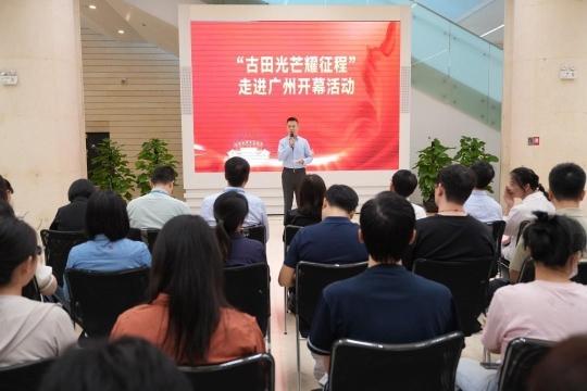 2024年是中华人民共和国成立75周年,也是古田会议召开95周年、古田全军政治工作会议召开10周年。根据广州市与龙岩市对口战略合作部署,强化两市文化交流,共同传承红色文化,赓续红色血脉,广州图书馆联合古田会议纪念馆、龙岩图书馆在9月24日至10月29日开展“古田光芒耀征程”走进广州系列活动,包括古田会议专题展、五彩龙岩图片展、红古田·奏强音、红古田·大讲堂等,这是两市公共文化领域的首次合作。2024年9月24日,“古田光芒耀征程”系列活动在广图负一层大堂开幕。
