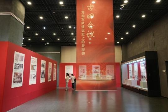 开幕活动结束后,观众们来到了广图负一层大展厅参观“古田会议——党和军队建设史上的里程碑”展览。展览采用史学编年体与记事体相结合的形式,以古田会议为主线,结合重要事件专题,涵盖政治、军事、经济、文化的各个层面。