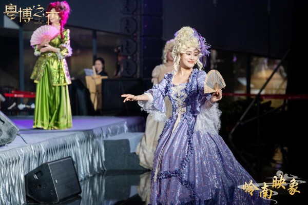 收官之夜的主题为“岭南映象”,展演在观众的期待中缓缓拉开序幕。此次展演以一幅馆藏外销油画为灵感,该画为清代外销画家林呱或其画室为四大行商之一的卢茂官所绘。故事以此为主线,通过情景戏剧、粤曲、粤剧、舞蹈等多种表演形式,讲述十三行的故事。表演中,穿插民乐演奏、扇舞扇语,特别设置“粤式英语”与观众互动,展示了当时岭南人将英语融入本土语言文化的独特现象。