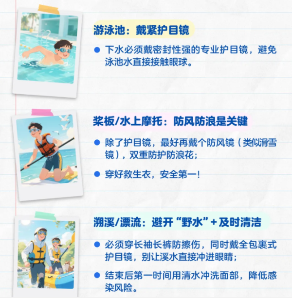 今天就来给大家扒一扒:近视手术后,到底多久能解锁“玩水自由”?不同水上项目有哪些“避坑指南”?